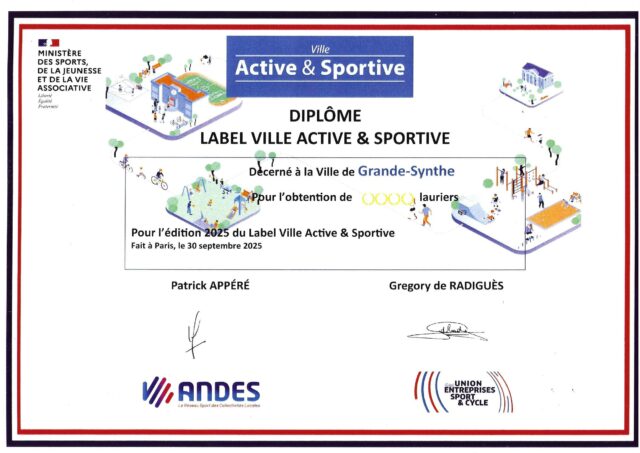 • La ville a obtenu les 4 lauriers du LABEL VILLE ACTIVE ET SPORTIVE pour 3 ans, « un grand merci aux associations qui nous ont permis de l’obtenir dont l’OGS natation water polo » dixit Karine FAMCHON.