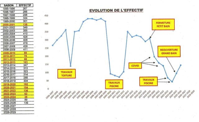 Globalement, c’est une augmentation de 5 euros sur les cotisations natation et water polo. Pour  l’aquagym (1 séance /semaine) coûtera 125€ et 165€ pour l’aquagym + l’aquatraining (1 séance de chaque /semaine)
