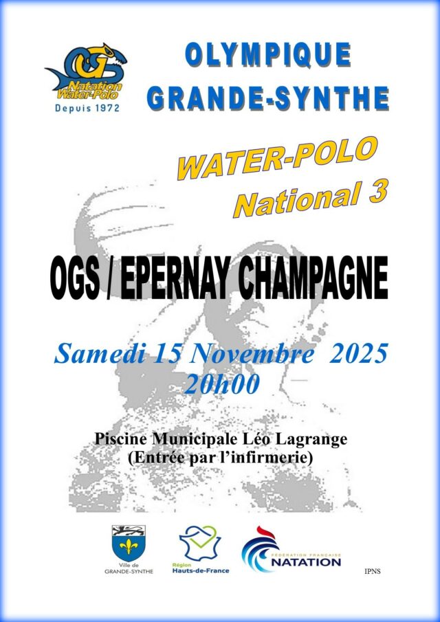 Après 3 ans d’absence en championnat de nationale 3, (Fermeture de piscine, absence de créneaux d’entrainements, manque de poloïstes..) L’OGS water polo disputera son 1er match de la saison à domicile ce samedi 15 novembre 2025 à 20h00 à la piscine Léo Lagrange face à l’équipe d’Epernay.
